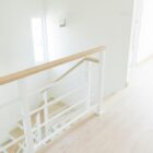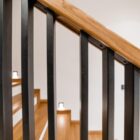 - Corrimão plano de madeira maciça com seção de 63x42mm.